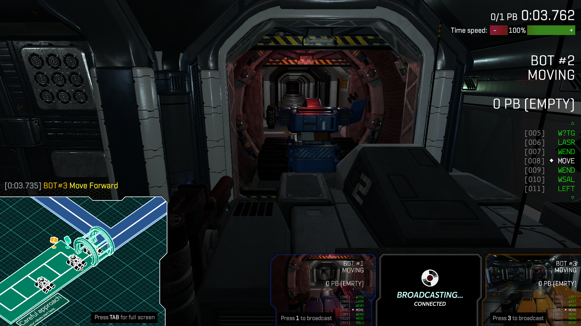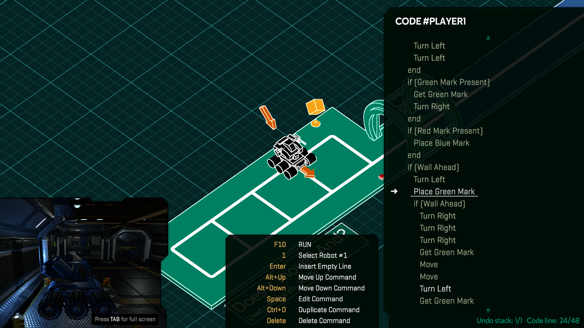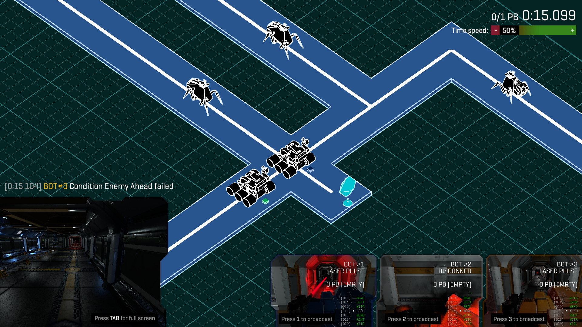 The task of each mission is to bring the requested amount of data back to the base and leave before the situation gets out of hand. For that, you need to program up to four robots to enter, fight, retrieve, and cooperate. Enemy forces are nearly unlimited, but they are weak, slow, and predictable. You are not.