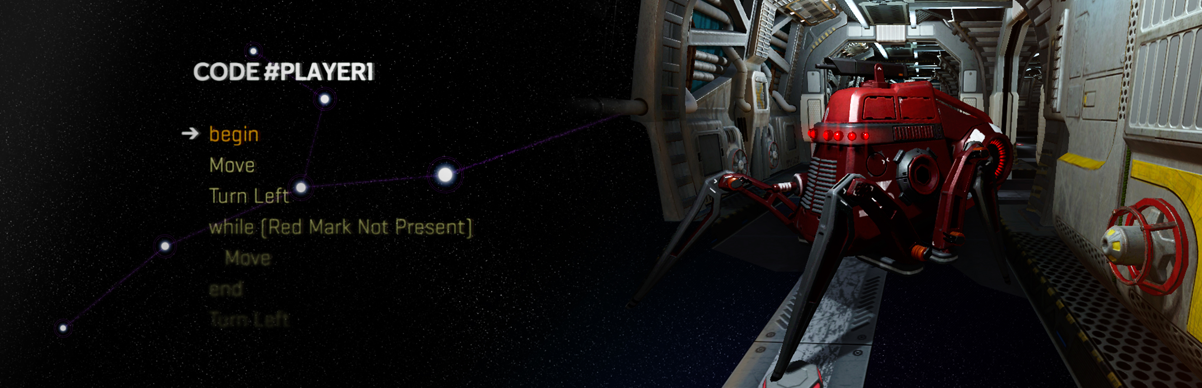 You cannot enter ships and you cannot control your robots directly. The only way to finish the task lies in the art of programming. Let droids board the ship… …collect the data… …and get out, destroying everything that stands in the way.