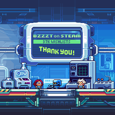Together with that, I would love to thank you for your fantastic support. The Bzzzt game has reached 37k wishlists and still has a breathtaking 99% positive reviews here on Steam.